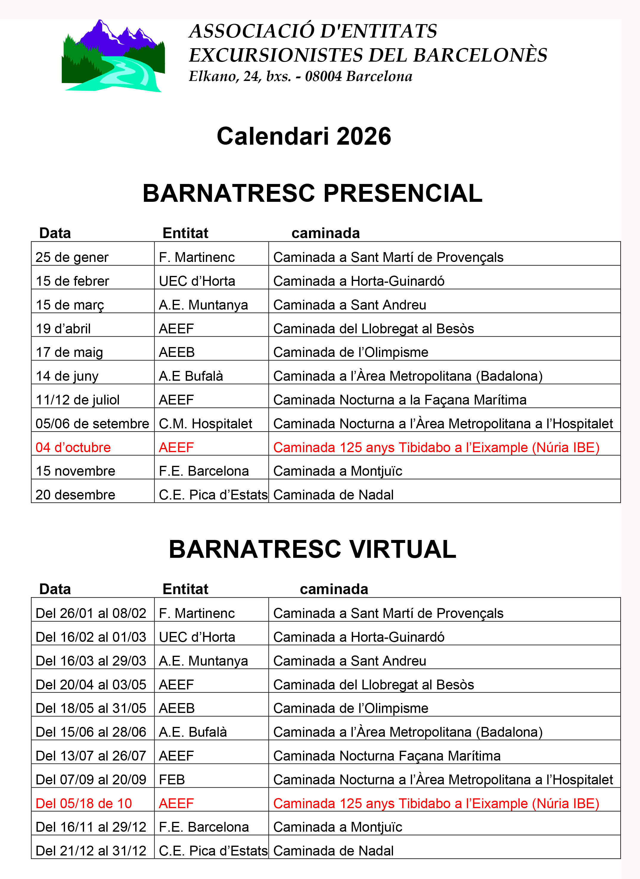 Próximas caminatas: consultar el apartado "próxima caminata"